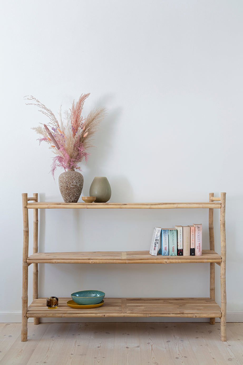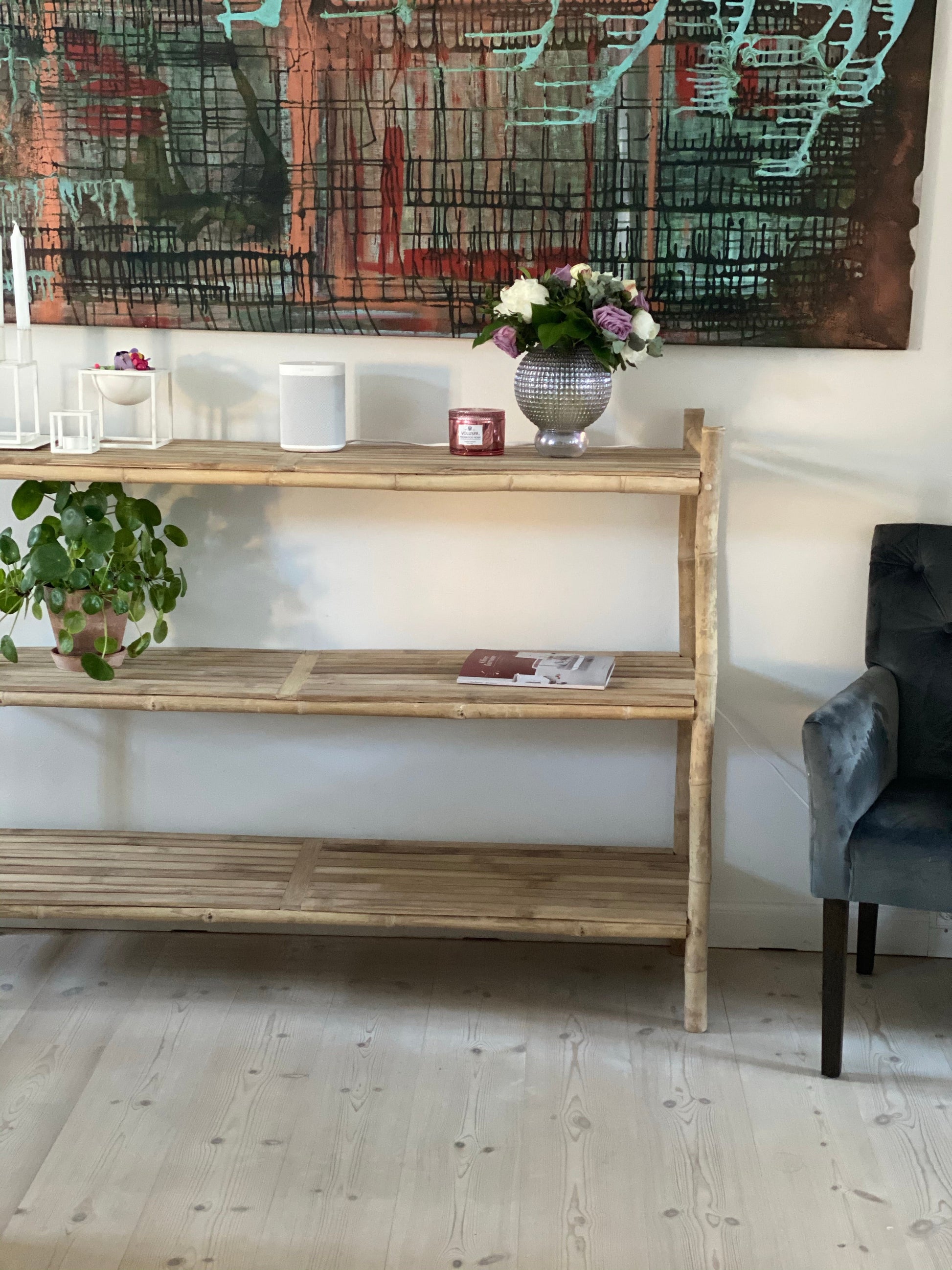 Lækker bambusreol i nordisk stil. Kan benyttes indenfor såvel som udenfor.