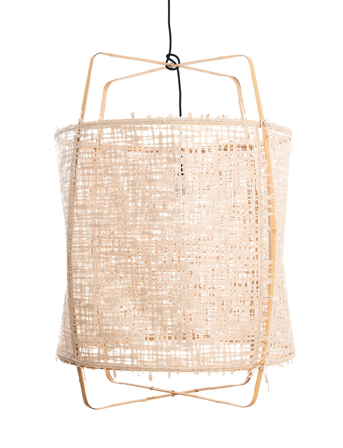 Håndlavet lampe i bambus ramme og med hvidt papir fra Ay illuminate.