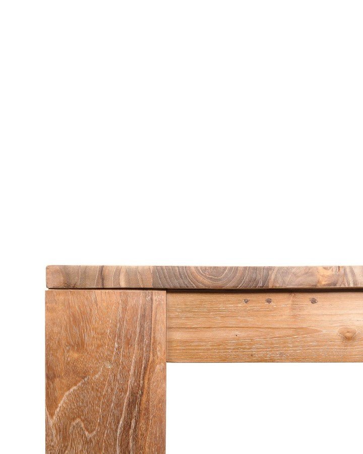 Fremstillet af teaktræ, der er genvundet fra gamle nedlagte bygninger i Java, Indonesien, og håndlavet af vores dygtige håndværkere. Hvert korn afledt af selve det naturlige træ er unikt, så der er ikke to borde, der er ens. Ideel til stuen, store rum, store måltider og møder.