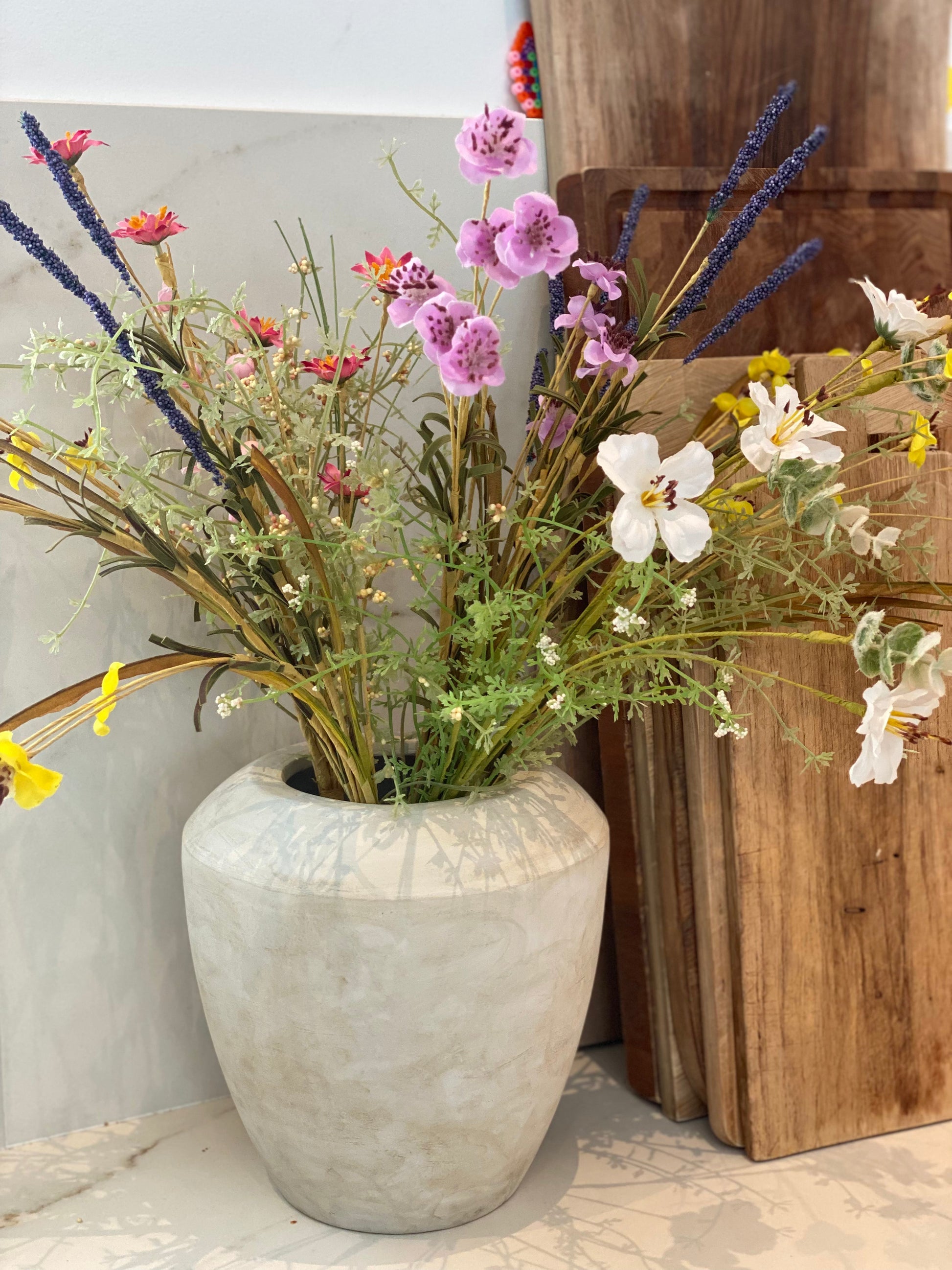 Krukkerne er udført i ler og da de er håndlavet vil ikke to krukker være 100% ens, det betyder også at de ikke altid er 100% vandtætte så vi anbefaler du sætter sætter en glasvase eller plastbeholder ned i bunden af krukken, alternativt en underskål.
