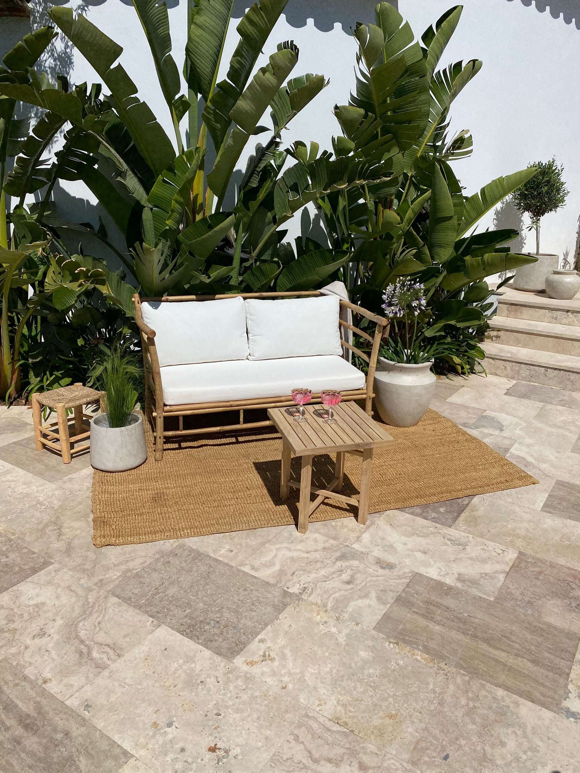 Sofaen er blevet behandlet med olie for yderligere beskyttelse. Vi bruger kun behandlet bambus i vores produktion for at sikre holdbarhed til brug både indendørs og udendørs.